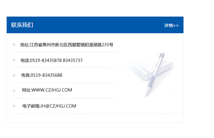 傳真:0519-83435688    郵編:213135    網址:WWW.czjhgj_com.wuhuzhijia.com    電子郵箱:JH@czjhgj_com.wuhuzhijia.com